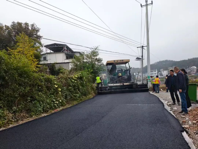 施工过程中,施工团队与镇村干部全程坚守一线,严把工程质量关,从道路拓宽、路基加固到沥青摊铺、细节完善,每一个环节都精益求精。摊铺机匀速作业、压路机反复碾压,黝黑的沥青混合料层层铺展,原本狭窄的村道逐渐蜕变为平整顺畅的交通线,宛如一条黑色缎带串联起各个村组。村民们望着门前平坦的大道,纷纷点赞:“以前路窄会车难,现在路宽又好走,心里别提多亮堂了!”