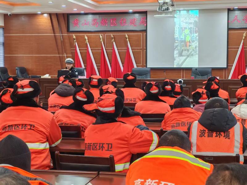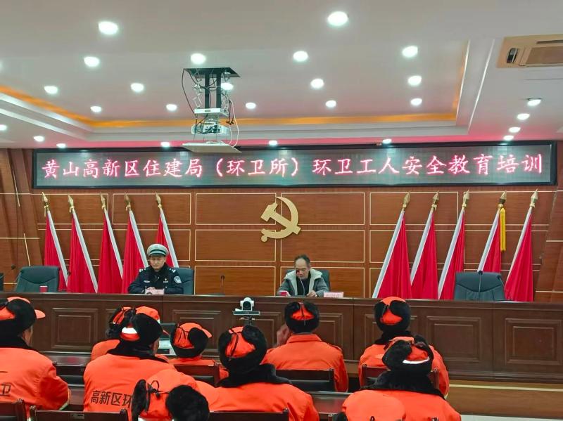 为筑牢环卫工人作业安全防线,防范化解环卫作业安全风险,保障其生命安全与权益,近日,黄山高新区住建局(环卫所)联合高新交管大队开展环卫工人安全专项培训,辖区百名一线环卫工人及作业管理人员参加。