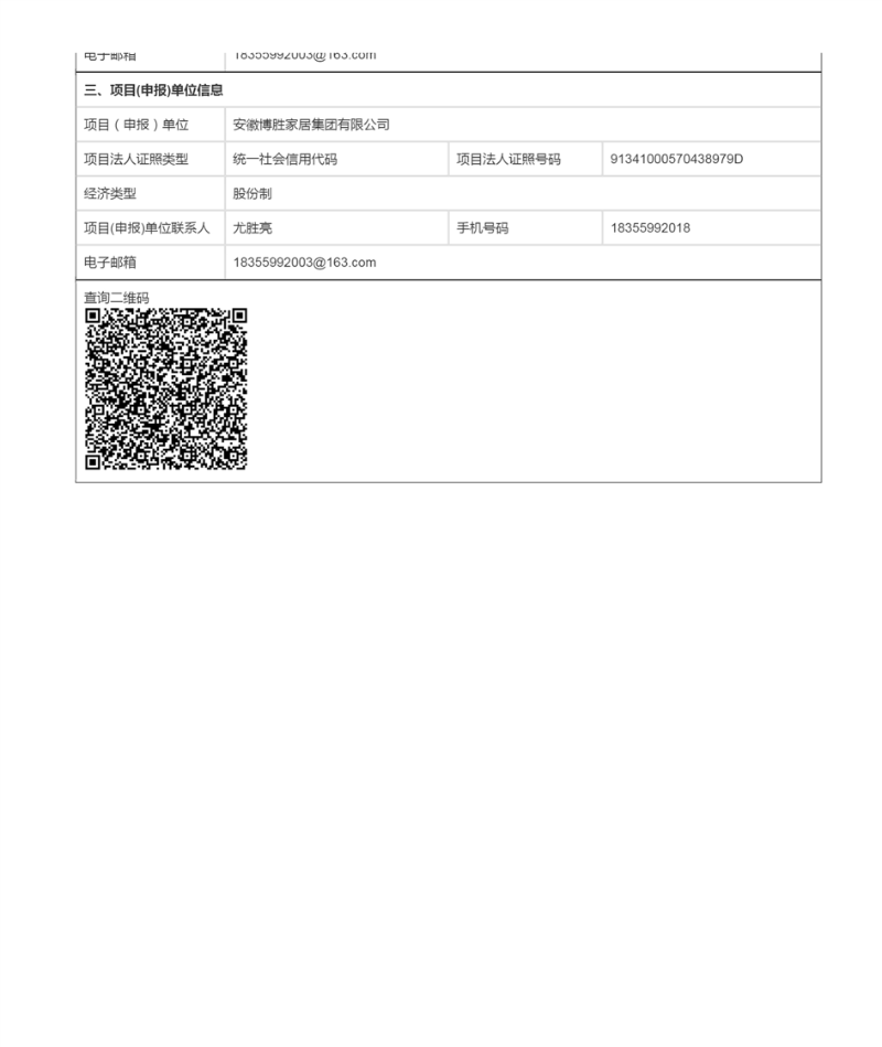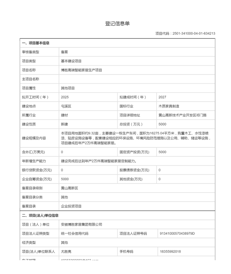 博胜高端智能家居生产项目登记信息单