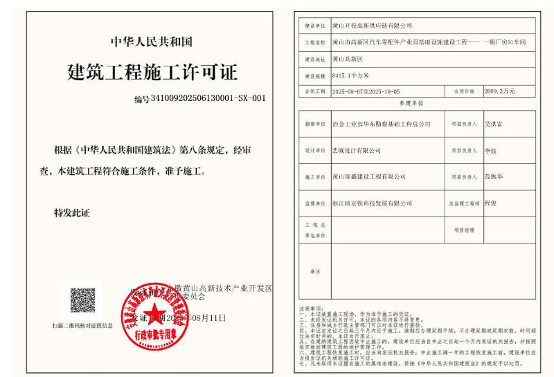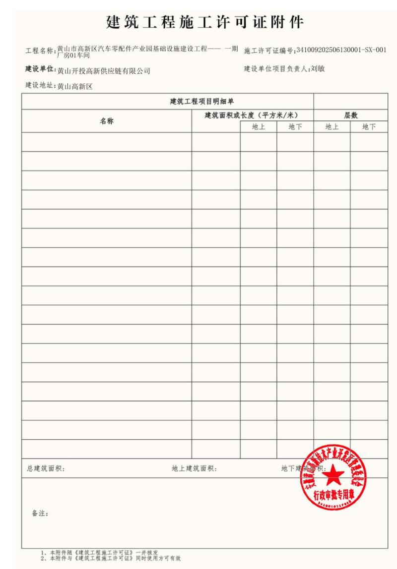 黄山市高新区汽车零配件产业园基础设施建设工程—— 一期厂房01车间
