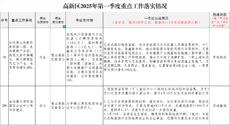 高新区2025年第一季度重点工作落实情况