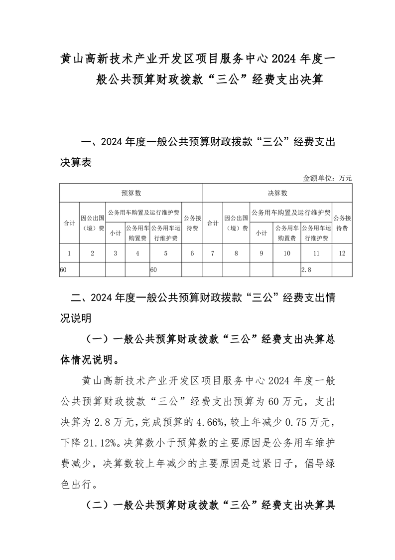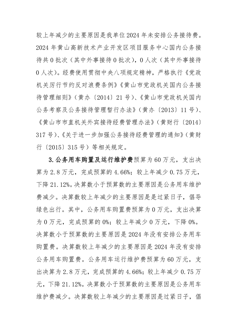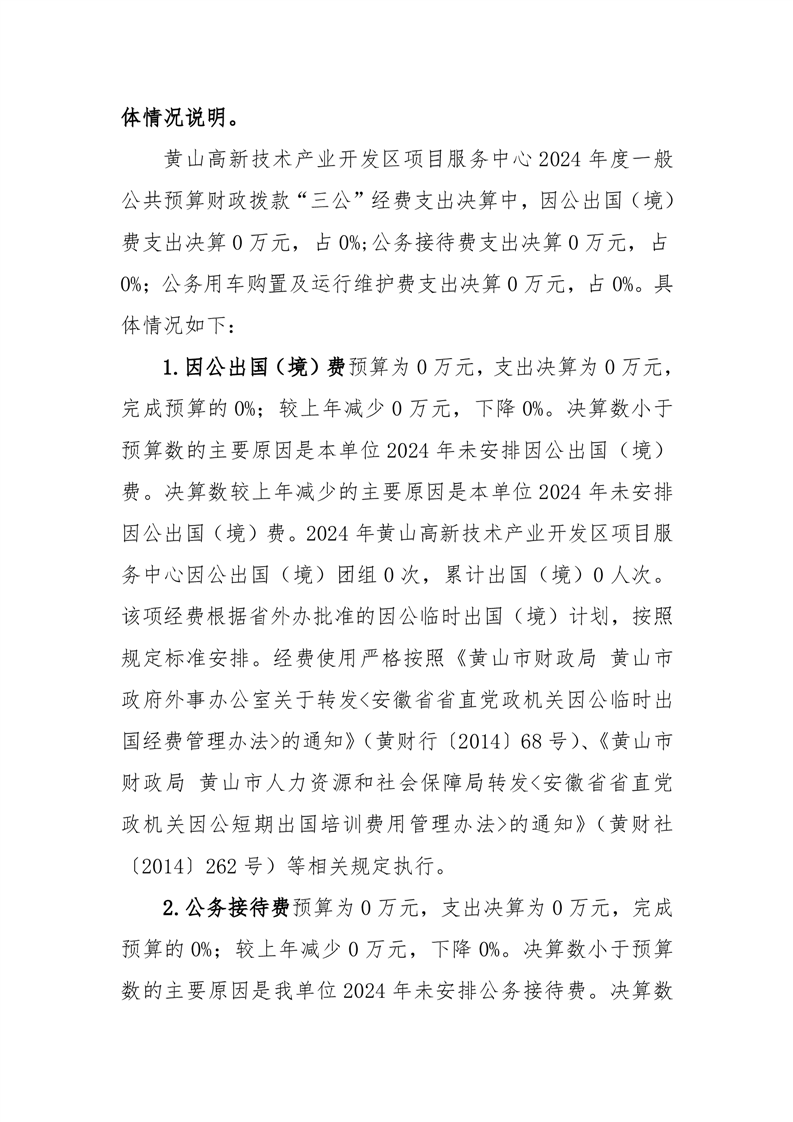 黄山高新技术产业开发区项目服务中心2024年一般公共预算财政拨款“三公经费支出决算情况说明