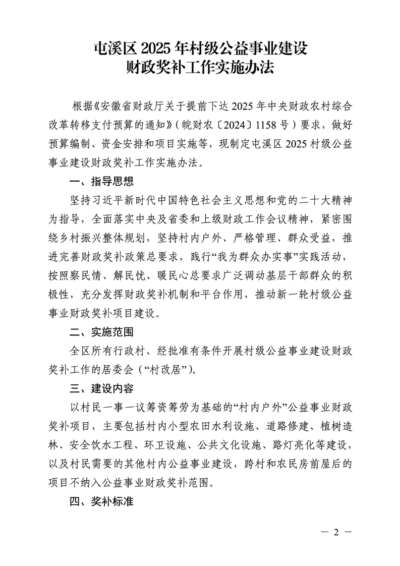 屯溪区2025年村级公益事业建设财政奖补工作实施办法