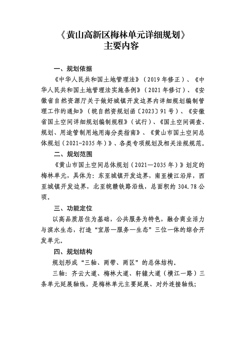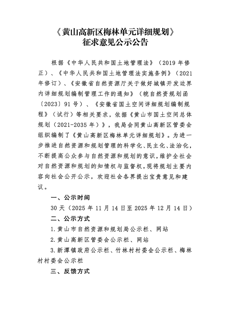 《黄山高新区梅林单元详细规划》征求意见公示公告