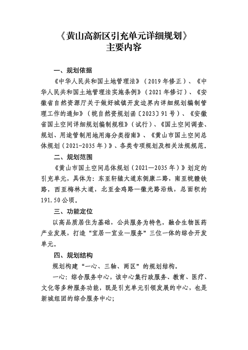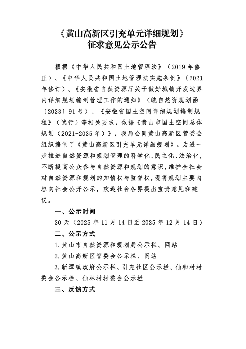 《黄山高新区引充单元详细规划》征求意见公示公告