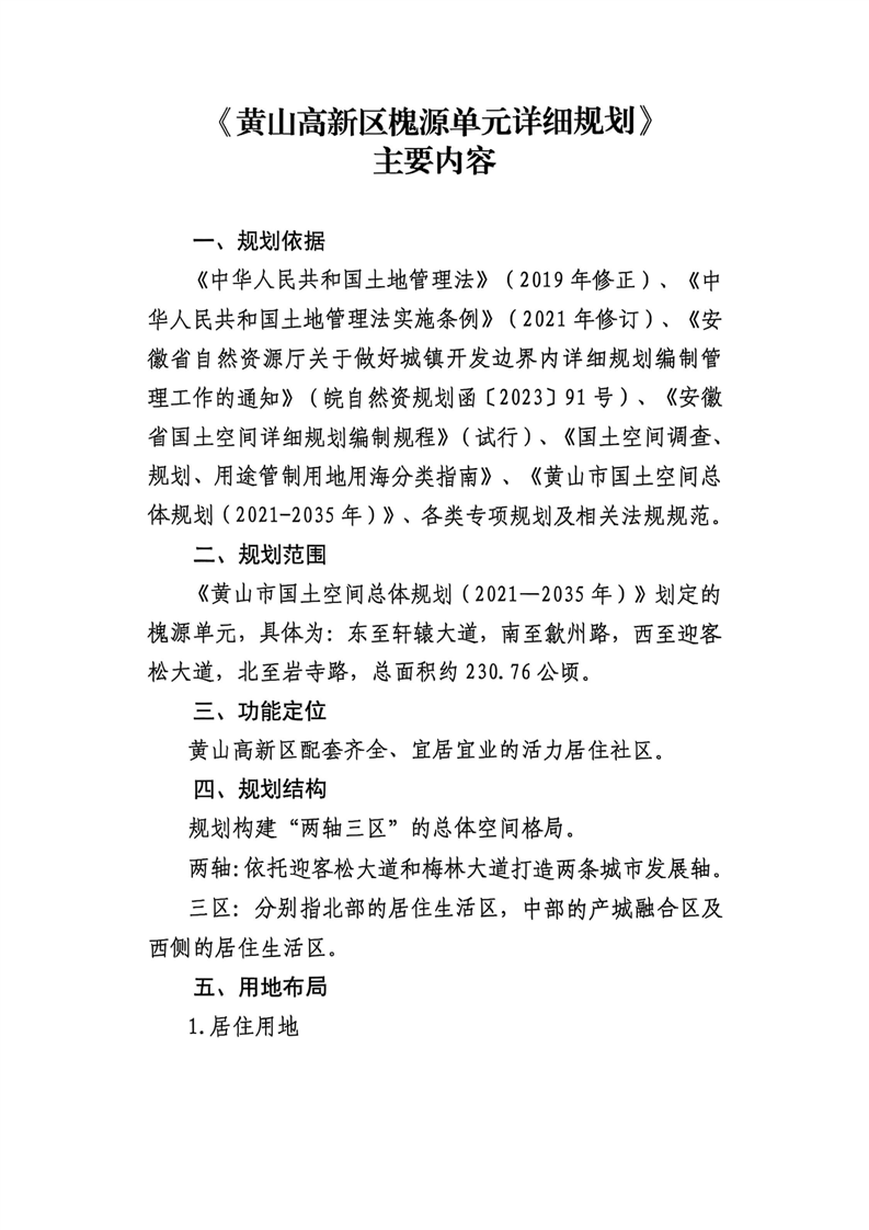 《黄山高新区槐源单元详细规划》征求意见公示公告